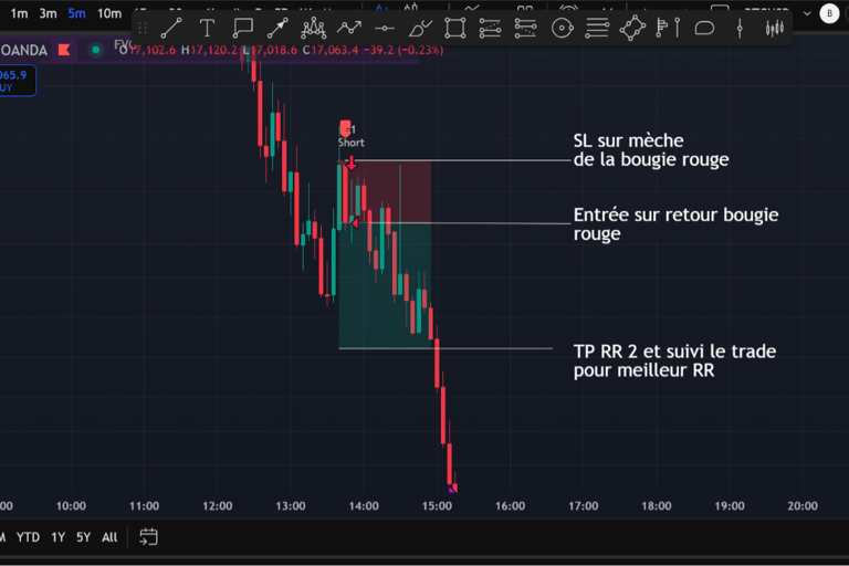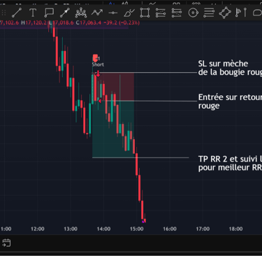Placer le Stop Loss juste au-dessus de la mèche de la bougie précédente est optimal.