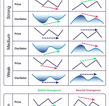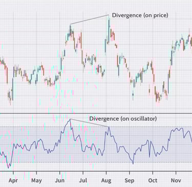 La divergence en forex se produit lorsque le mouvement du prix d'un actif ne correspond pas aux indicateurs techniques, tels que le RSI (Relative Strength Index) ou le MACD (Moving Average Convergence Divergence). Cela peut signaler un potentiel retournement de tendance. Les divergences peuvent être classées en divergence classique (haussière ou baissière) et en divergence cachée.