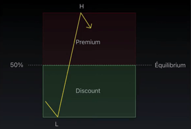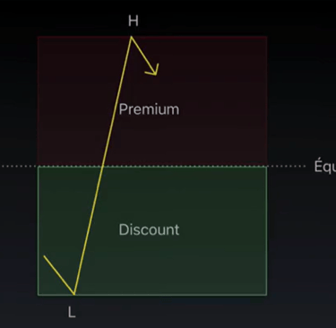 Premium & Discount = En haut des 50% on est en Premium et en bas des 50% on est en Discount.
