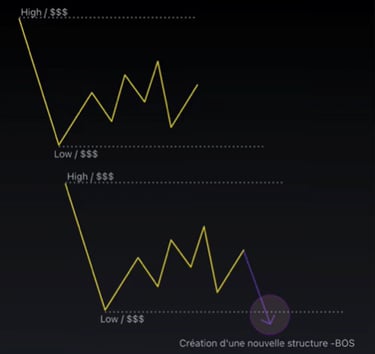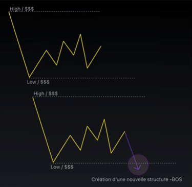 Le BOS correspond à la cassure de la structure actuelle, ce qui entraine la formation d'une nouvelle structure.