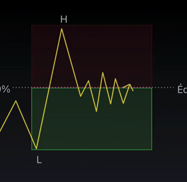 Dans Trading View = Utilisez l'outil de retracement Fibonacci pour identifier le niveau d'équilibre = Correspondant au 50% du Fibonacci.