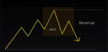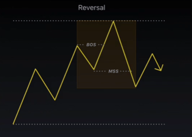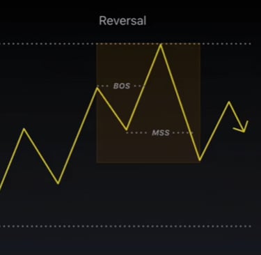 Le renversement de tendance, ou ''Reversal'' est identifié par un changement dans la structure du marché que l'on désigne par un MSS = Market Structure Shift.