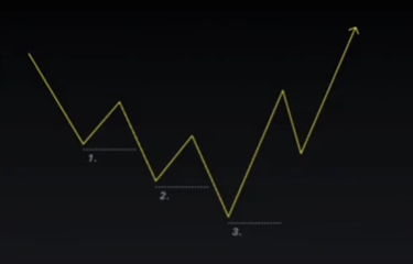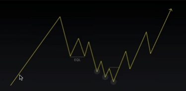 Ce processus implique des ventes massive vers une zone de liquidité à un point bas du marché, suivi d'une reprise haussière qui forme une nouvelle structure ascendante.