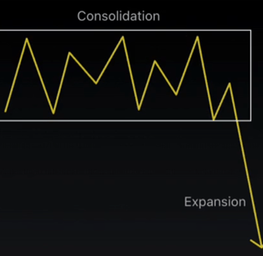 Pour repérer une consolidation = Cherchez une période ou le prix montre peu ou pas de direction claire, ce qui peut signaler l'anticipation d'une expansion future.