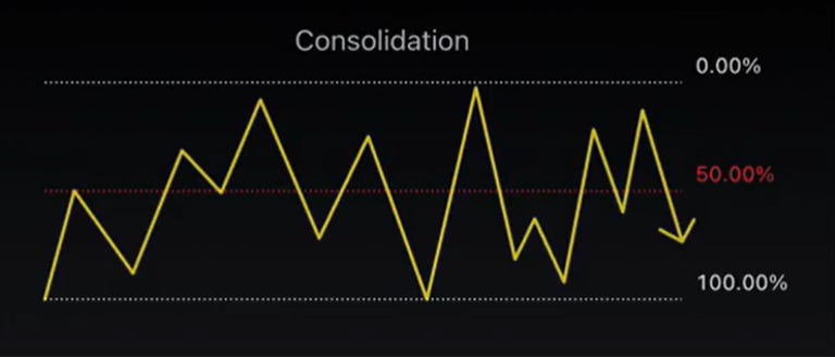 Lorsque le prix consolide, il évolue dans une zone d'équilibre de prix = 50% = Équilibrium.